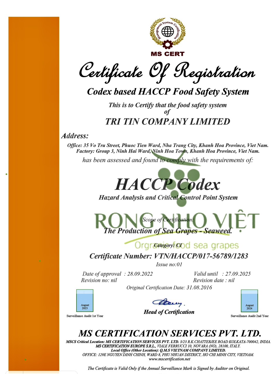 CTY TNHH RONG NHO VIỆT - RONG NHO TRÍ TÍN chuyên cung cấp và phân phối, xuất khẩu các loại Rong nho biển được nuôi trồng và sản xuất trong nước giúp cho khách hàng có sự lưa chọn an toàn trong thực đơn món ngon hàng ngày của gia đình.