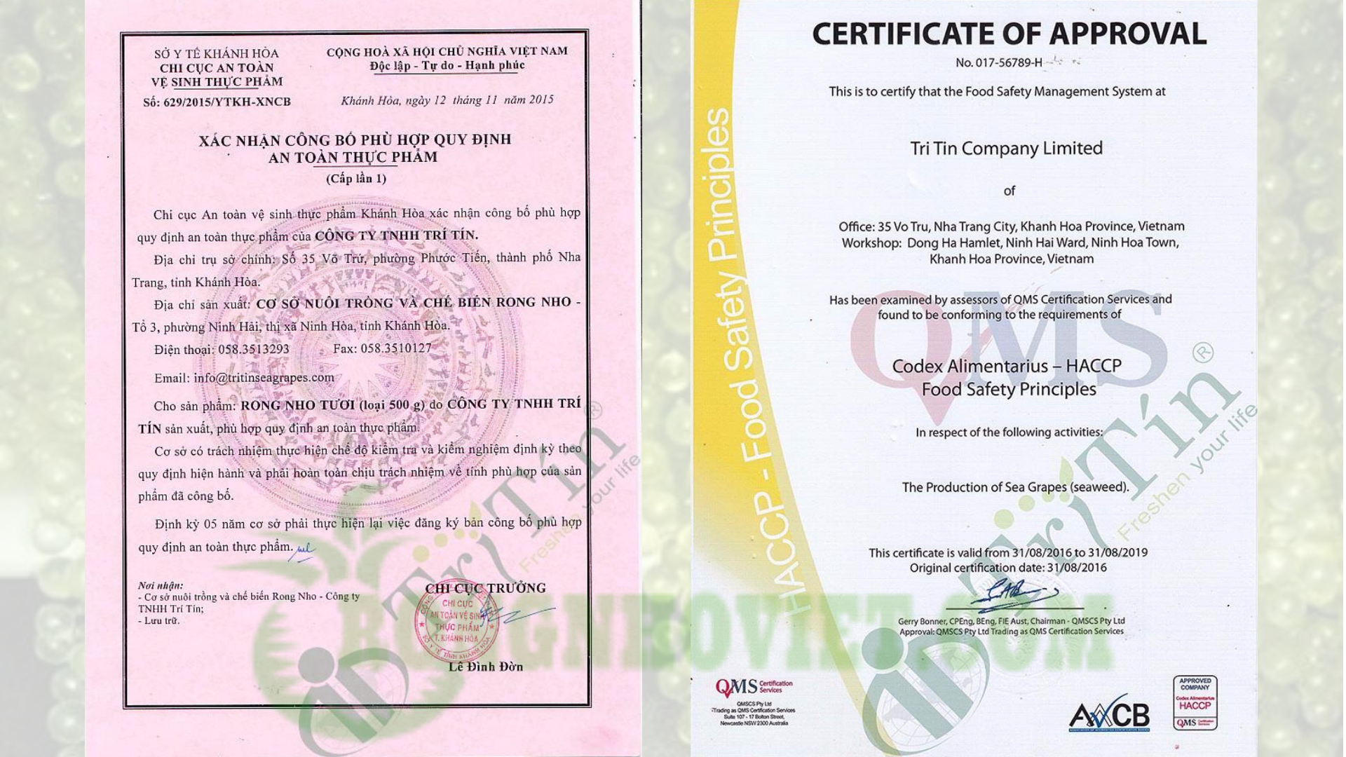 Giấy chứng nhận chất lượng: