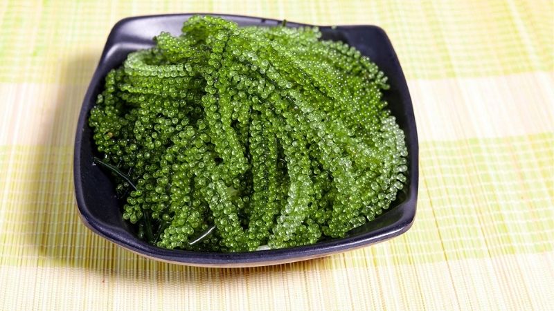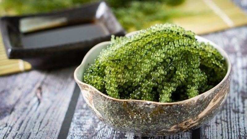 Ăn rong nho tươi chấm với sốt mayonnaise hoặc nước tương hòa với giấm đường như là một món rau xanh sẽ cho cảm nhận rất ngon miệng.