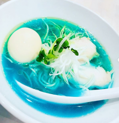 Bạn đã thấy một cái gì đó tương tự? Món ăn truyền thống của Nhật Bản của nước dùng và mì lúa mì màu này trông lạ. Súp sử dụng thuốc nhuộm tự nhiên có nguồn gốc từ rong biển. Nhân tiện, súp, làm cho trứng vàng, đỏ, xanh lá cây và xanh đậm. Tôi tự hỏi nếu anh ta vẽ ngôn ngữ? ..